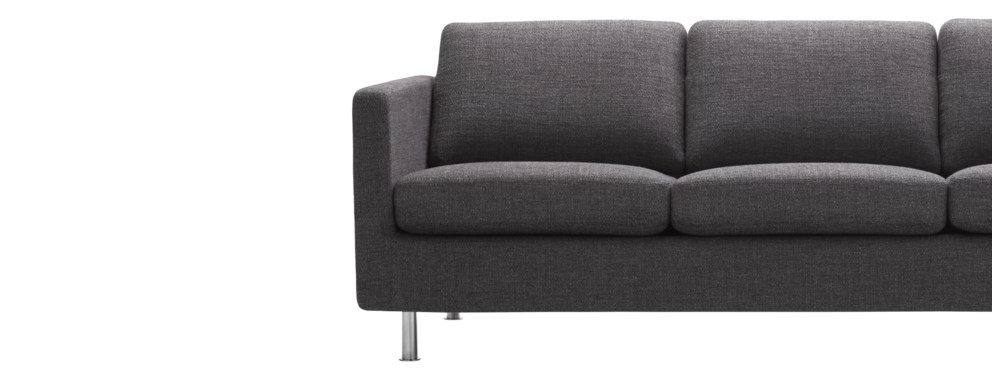 Klassinen kolmen istuttava DUX-sohva, jossa on tukea antava istuin ja pehmeät käsinojat.