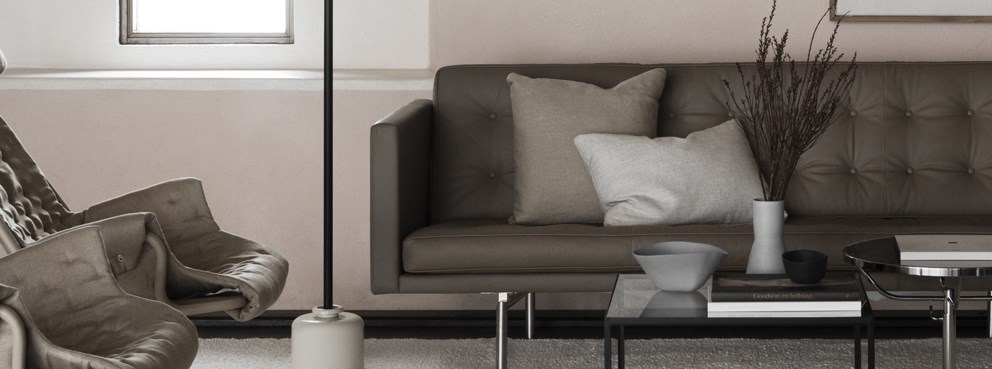 Tyylikäs ja mukava kolmen istuttava klassikkosohva, jonka tyynyissä on DUX-jousitus.