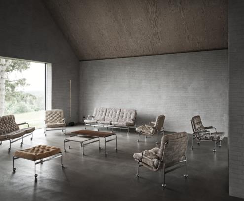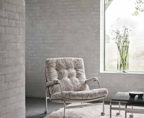 Tämän klassisen Karin-nojatuolin on suunnitellut Bruno Mathsson vuonna 1969. Se on ensimmäinen huonekalu, joka on syntynyt vuosikymmeniä kestäneen yhteistyömme tuloksena. Tämän tyylikkään malliston ikonisessa Karin-nojatuolissa on mukavat pehmustetut tyynyt, kromattu runko ja tukeva kude. Karin-valikoimaan kuuluu myös rahi ja pöytä.