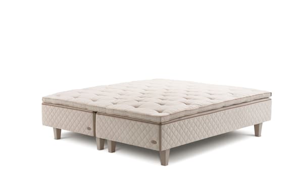 DUX 60 -sängyssä on Pascal-järjestelmä, jossa on vaihdettavat jousikasetit ja kaksiosainen patja ja runko.