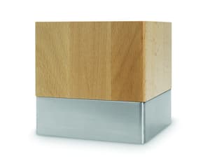 Neliönmallinen puujalka, valmistettu massiivipuusta. Jalan alareunassa on metallisomiste, joka antaa viimeistellyn ulkonäön.